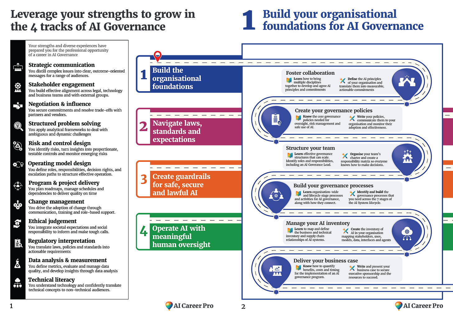 So I’ve designed AI Career Pro to organise learning around four tracks that reflect how governance work actually happens, and how you can build on the strengths you already have: